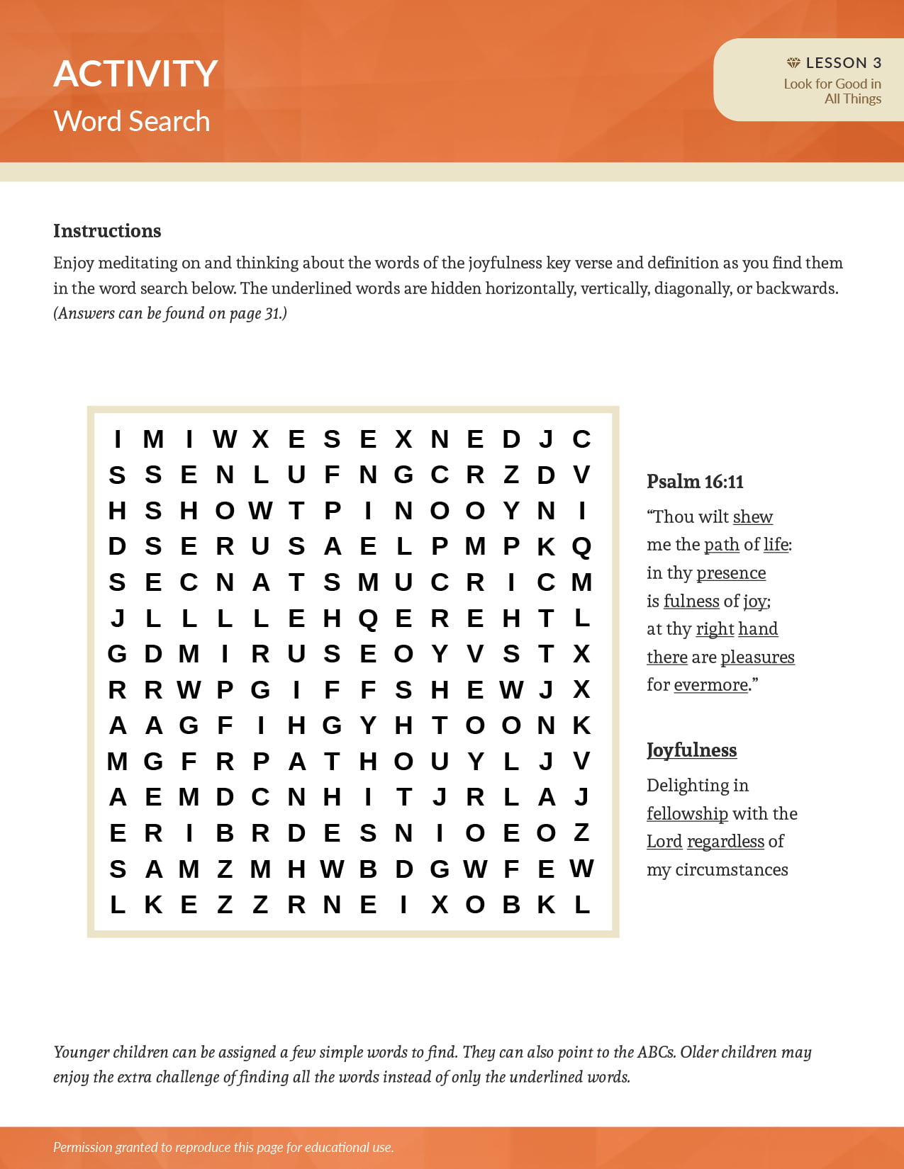 The operational definition of joyfulness is “delighting in fellowship with the Lord regardless of my circumstances.” When you delight in someone, you admire and appreciate him and enjoy being with that person. The same is true about your relationship with God. Delighting in fellowship with Him produces a deep, consistent assurance that sustains a Christian through any situation. When you talk with the Lord, read His Word, and act on what He says, your heart will be encouraged. As you rest in the Lord and receive strength from Him, joy and peace will spring from fellowship with God. While happiness may look like joy, it disappears when life does not go well. A happy person’s emotional outlook fluctuates, depending upon what is happening, while the joyful person radiates hope and cheer despite changing circumstances. His attitude often refreshes and encourages those around him.