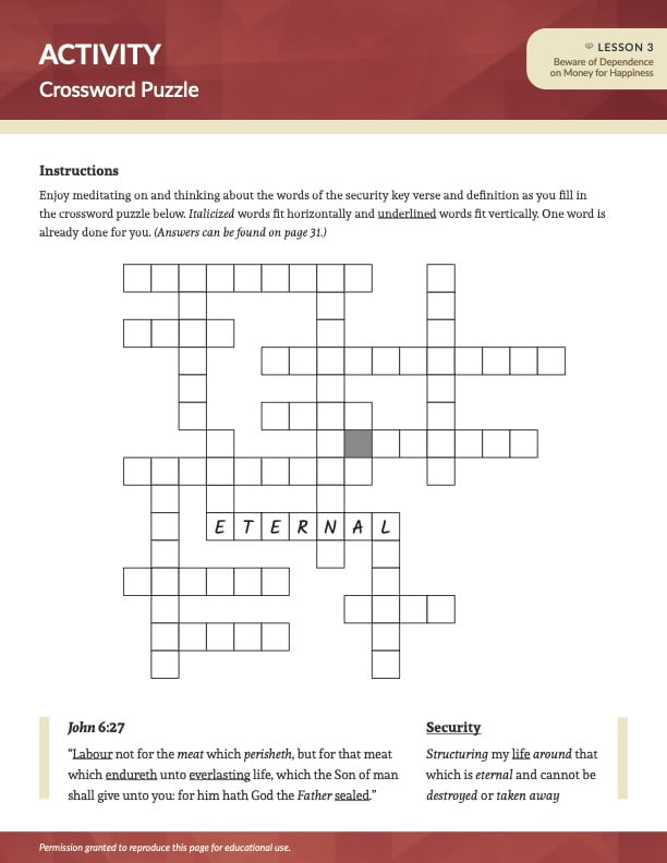 The definition of security is “structuring my life around that which is eternal and cannot be destroyed or taken away.” Many people strive to obtain wealth, approval, and pleasure, but do not find peace. Peace comes when our minds are fixed on the Lord and we are trusting in Him rather than in material belongings. “Thou wilt keep him in perfect peace, whose mind is stayed on thee: because he trusteth in thee” (Isaiah 26:3). True security, that which cannot be destroyed or taken away, comes when you live for what will last for eternity.