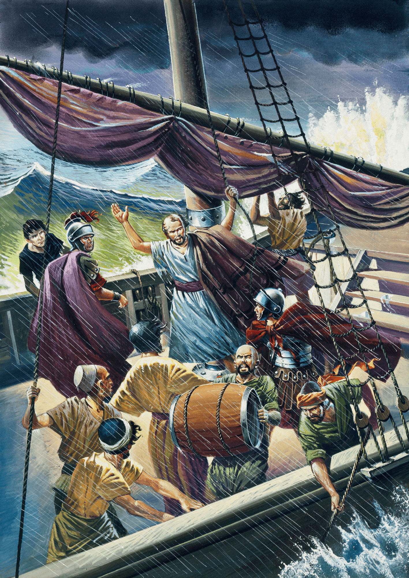 Wherever Paul went, the apostle spoke confidently by the power of the Holy Spirit! On three different missionary journeys, he traveled throughout many countries preaching the Gospel, discipling new believers, and starting local churches. On each trip, Paul proclaimed reconciliation with God through Jesus Christ. Often, his hearers were moved to action—whether to repent and trust Jesus, or sometimes to seek to kill Paul! Although his message brought him much persecution and hardship, Paul could be secure because he knew he was in God’s will and trusted Him. The Jewish religious leaders were agitated and disturbed at the Apostle Paul’s resolute preaching. One day as Paul spoke to them, the leaders began to fight over his words. However, Paul was rescued from injury and taken before the Roman governor. Ultimately, the decision was made that Paul would stand trial before the powerful Roman emperor, Caesar. The governor arranged for Paul and other prisoners to sail to Rome under the watchful eye of a Roman centurion and his soldiers. Would Paul trust God with his future? How would God strengthen him when the voyage became dangerous? Would the apostle rely on God for his protection? How might Paul, even while a prisoner, confidently offer hope to others facing the same danger?