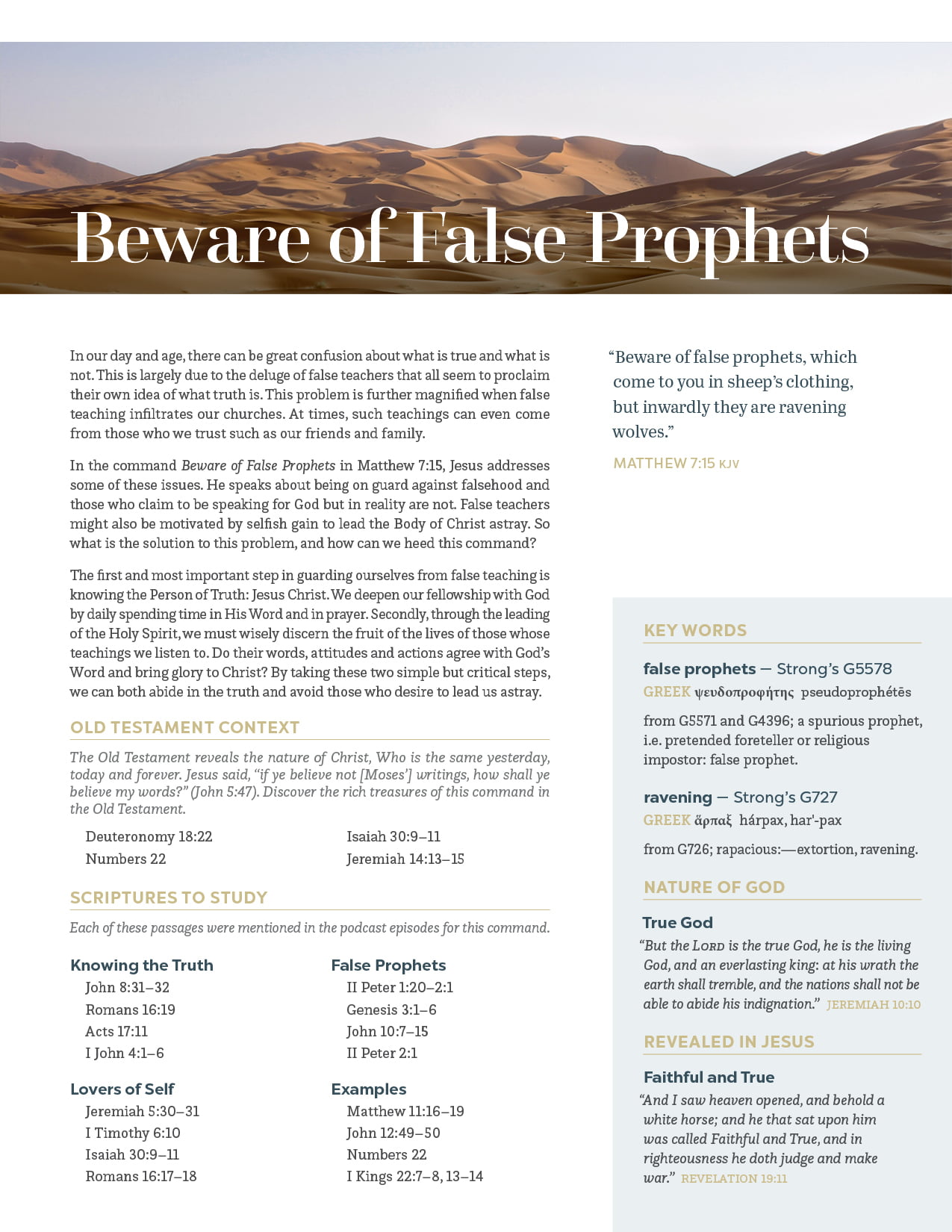 You can learn more about the command Beware of False Prophets in the book Commands of Christ: Series 3.