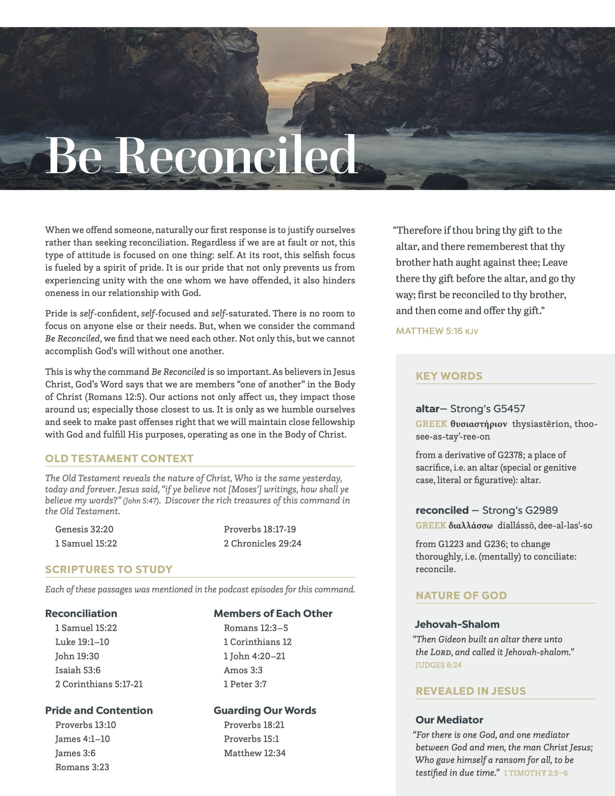 In addition to meditation on Matthew 5:23–24, meditating on the verses below will provide you with further insight and understanding of Christ’s command: Be Reconciled.